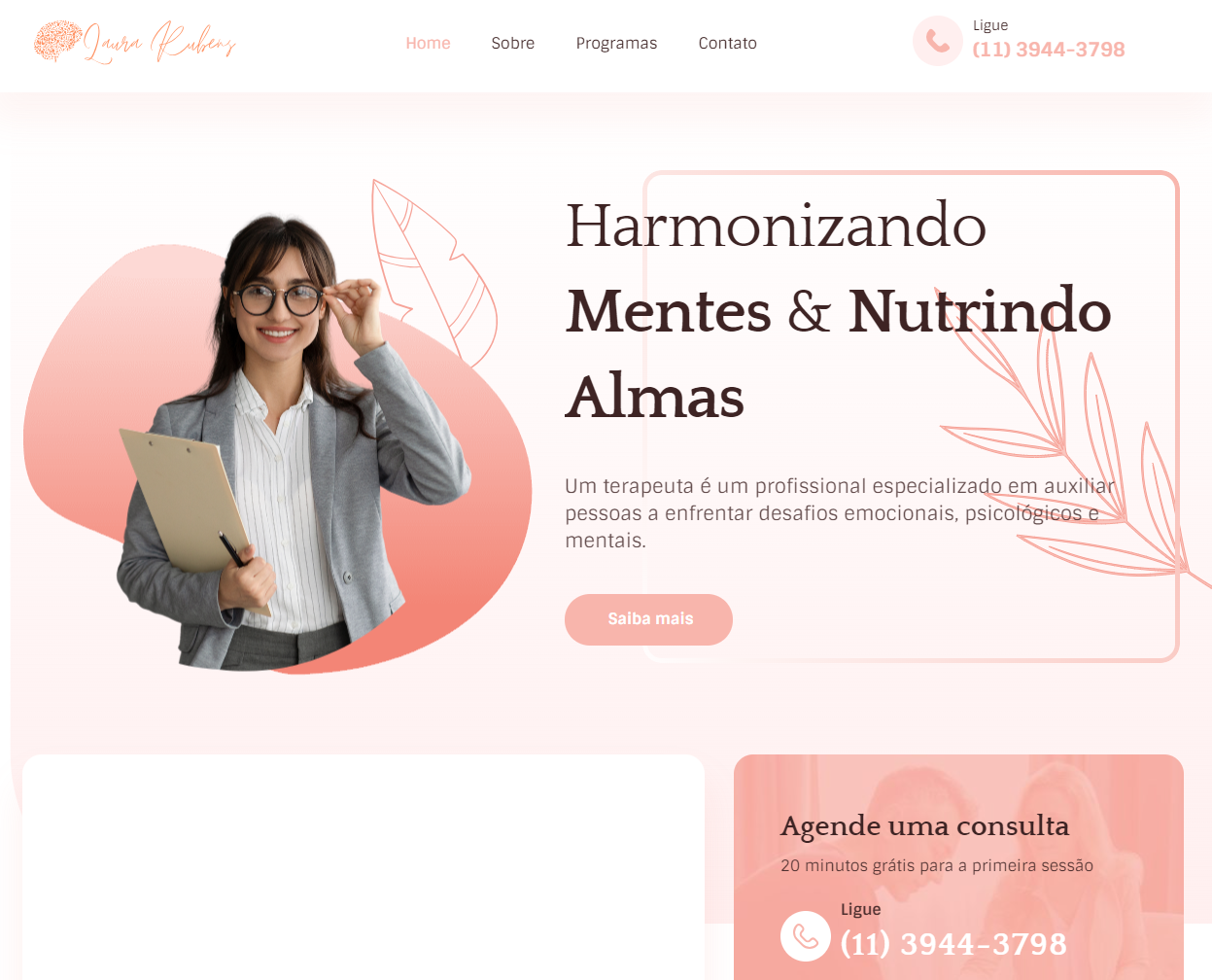 Desenvolvimento de um site para uma terapeuta com o objetivo de estabelecer uma presença online que reflita de maneira autêntica sua abordagem terapêutica. O site servirá como um espaço acolhedor e acessível, destinado a pessoas que buscam apoio emocional e desejam entender melhor como a terapia pode ajudá-las.